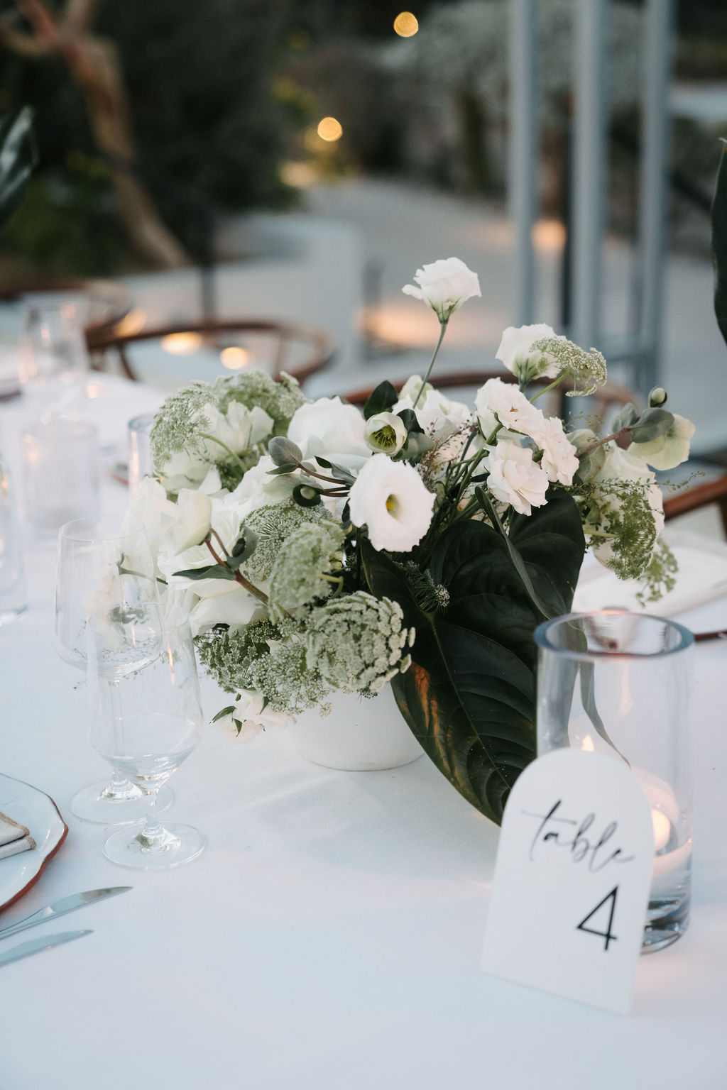 The ceremony overlooked the ocean, framed by an arch of white roses, lisianthus, and soft greenery swaying in the breeze. With the sound of the waves and their loved ones surrounding them, the moment became more than a ceremony—it became a feeling.