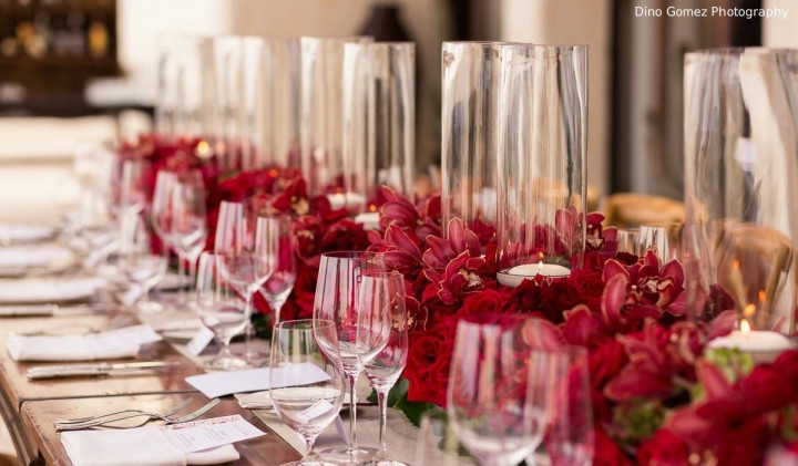 red floral centerpiece dino gomez photography los cabos weddings elena damy floral design