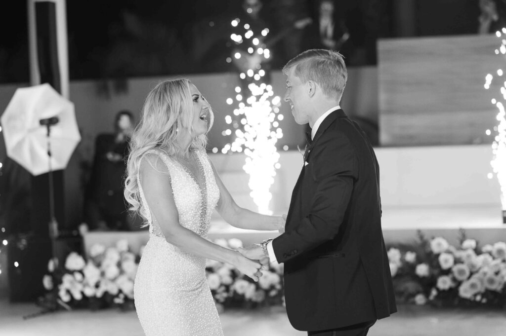 What’s your favorite detail—would you choose the floral arch, the glowing dance floor, or Ashley’s sparkling second look?