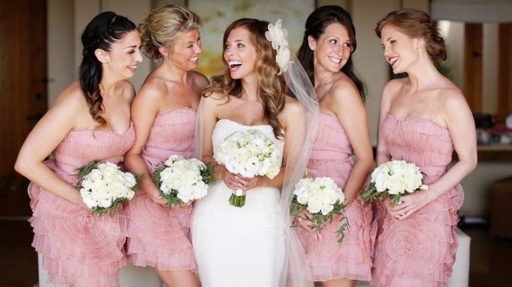 White bridal bouquets pink bridesmaids dresses beach weddings mexico elena damy