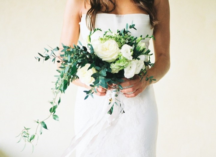 white bridal bouquet organic greens roses lisianthus elena damy floral design cabo florists 2